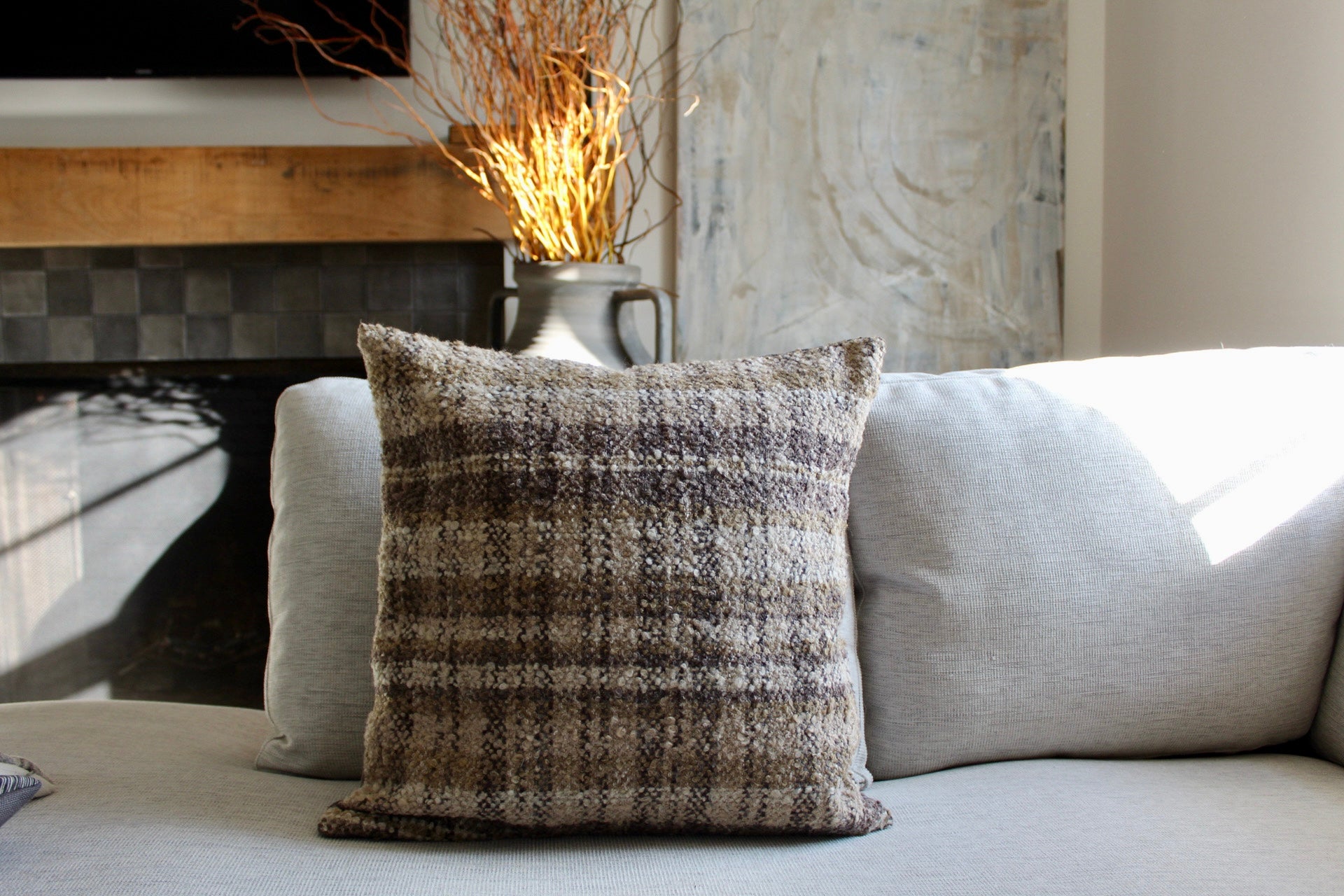 Elevate your home decor with our custom 20x20 pillows, crafted from the luxurious durable fabric. This sophisticated textile features warm, earthy tones of brown with subtle hints of taupe, creating a rich and inviting atmosphere in any room. The finely woven pattern adds depth and texture, offering a refined tactile quality that enhances both style and durability. Its understated design strikes the perfect balance of elegance and versatility, making it an ideal complement to a variety of interior styles. Each pillow is expertly made with the decorative fabric on the front to showcase its unique texture, while the back is crafted from a complementary neutral-toned fabric for a polished, cohesive look.