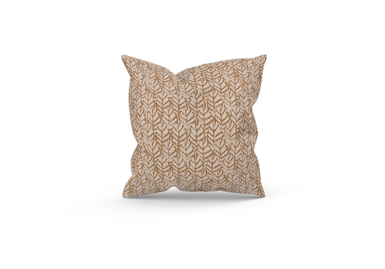 Bring life to your space with a pillow covered in fabric that combines modern elegance with an artisanal flair. These 20x20 pillow covers feature a design that presents a bold, abstract pattern inspired by natural textures and landscapes, evoking a sense of organic movement. The rich ochre tones are contrasted with delicate, lace-like motifs, creating a dynamic interplay of light and shadow that adds warmth and depth to any space. The front of the pillow is crafted from our premium fabric to showcase the unique design, while the back is finished with a complementary neutral fabric for a balanced and refined look.